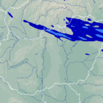 A vasárnap hajnali óráktól előbb északkeleten, majd a keleti és középső országrészben is számíthatunk záporok kialakulására. Az ország nagy részén nem hull jelentősebb mennyiségű csapadék a frontból, de északkeleten az ismétlődő záporokból helyenként 5-8 milliméter is összejöhet.
