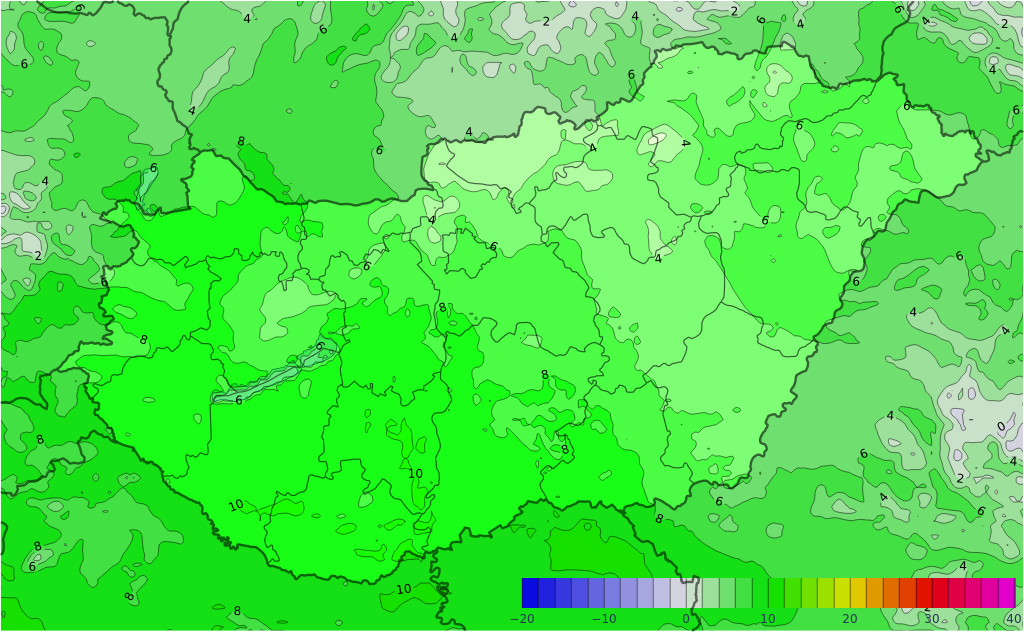 Mind a CFS, mind az UKMO modell nagyon hasonló eredményre jut, szintén nyugat-kelet irányú enyhülésről számolnak be. Az UKMO esetén megemlíthető, hogy Nyugat-Európában mindenhol tetten érhető a hideg légtömegek hatása, kelet felé pedig térben korábban és nagyobb mértékben jelenik meg az enyhébb tavasz lehetősége.