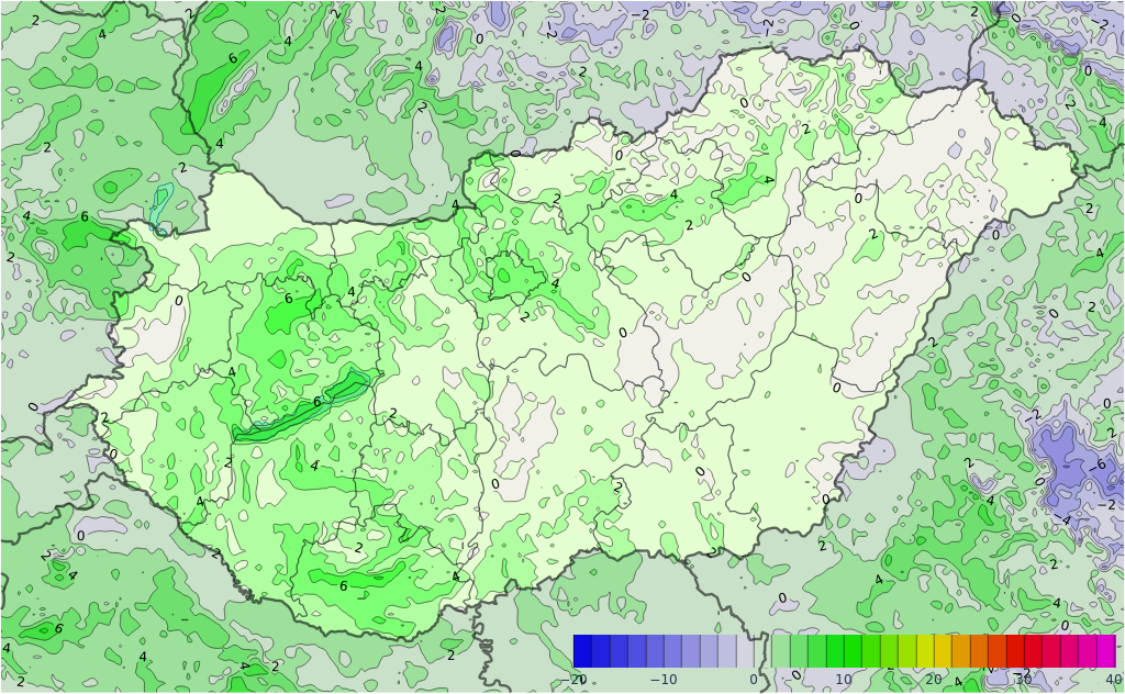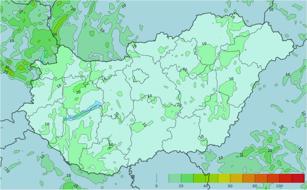 A nyugat felől érkező jobbára összefüggő frontális csapadékzónából az esti, éjszakai órákban előbb a Dunántúlon, később már a főváros tágabb térségében, kedd hajnaltól, reggeltől pedig az északkeleti, keleti országrészben is várható csapadék: ez az ország északkeleti, keleti felén nagyrészt havazás formájában valószínű, arrafelé kedd estig nagyobb területen hullhat 3-10 cm friss hó (lokáisan akár több is). Nyugatabbra egyre nagyobb területen az ónos eső (illetve a fagyott eső) válik jellemzővé (előtte főként a Dunántúl északkeleti részén, illetve a középső tájakon a kezdeti havazásból ált. lepel – 4 cm friss hóréteg több helyen is létrejöhet), ezzel együtt nyugatról a csapadékhajlam is lassan csökkenni kezd a kedd hajnali, reggeli óráktól. Kiemelten a Dunántúl északi, északnyugati részén van számottevő esély kissé nagyobb mennyiségű, akár több mm-nyi ónos csapadékra.