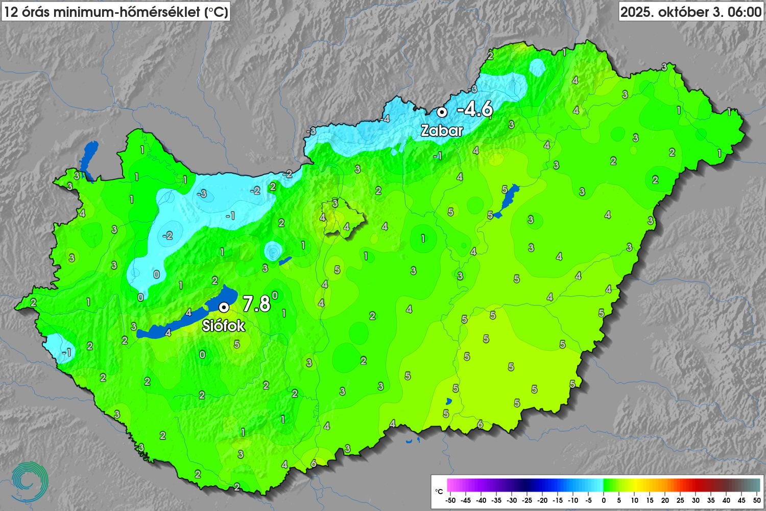 Viszont nem ez az egyetlen szélsőség, amely az idei október elején született. Már október 2-án is több helyen előfordult fagypont alatti minimum az ország északkeleti részén, előzetes adatok szerint viszont a mai, október 3-i minimumhőmérsékleti rekord meg is dőlt. Zabaron egészen -4,6 fokig süllyedt a hőmérséklet hajnalra, amely nemcsak szezonrekord eddig, de az országban ezen a napon még sosem mértek ilyen alacsony minimumhőmérsékletet. A korábbi csúcs szintén 2013-ban született, Szécsényben akkor -4,3 fokot mértek a HungaroMet műszerei.