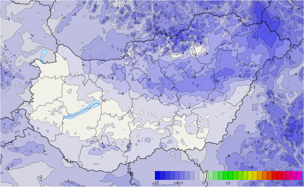 Az Alföld középső területein vasárnap tartósabb sűrű köd is előfordulhat. A ködös, rétegfelhős tájakon zúzmara, ónos szitálás, hószállingózás kialakulhat. Az ország északkeleti harmadában hétfőre virradó éjszaka -15 fok körül vagy alatt alakulhatnak a minimum hőmérsékletek.