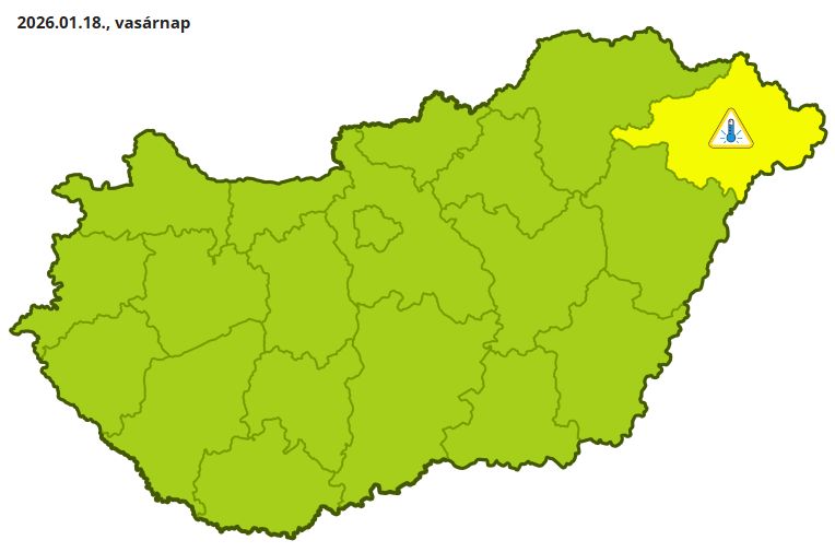 A Hungaromet Zrt. elsőfokú figyelmeztetést adott ki vasárnapra Szabolcs-Szatmár-Bereg vármegyére a rendkívüli erős lehűlés miatt.