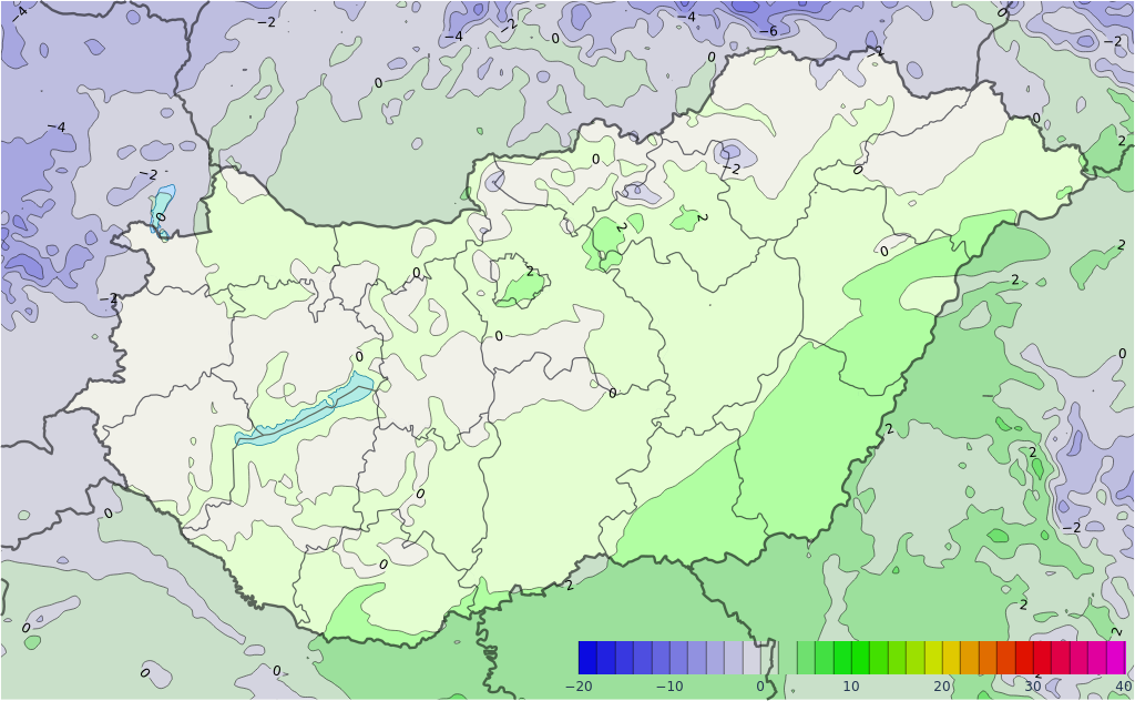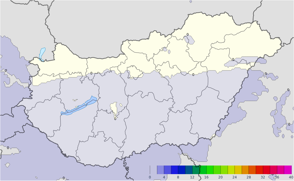 Szombat délutántól, vasárnap reggelig kialakulhat összességében nem jelentős mennyiségű csapadék (0,5-2 milliméter) az országban, amelynek halmazállapota inkább gyenge eső, havas eső formájában valószínű, azonban elsősorban északkeleten, keleten havazhat (lepel-2 centiméter, Szabolcs-Szatmár-Bereg megye keleti felében akár 3 centiméternyi is hullhat).