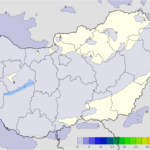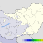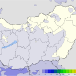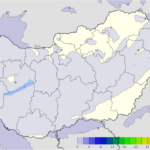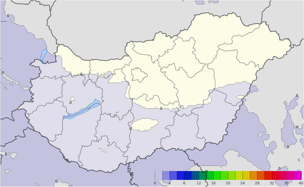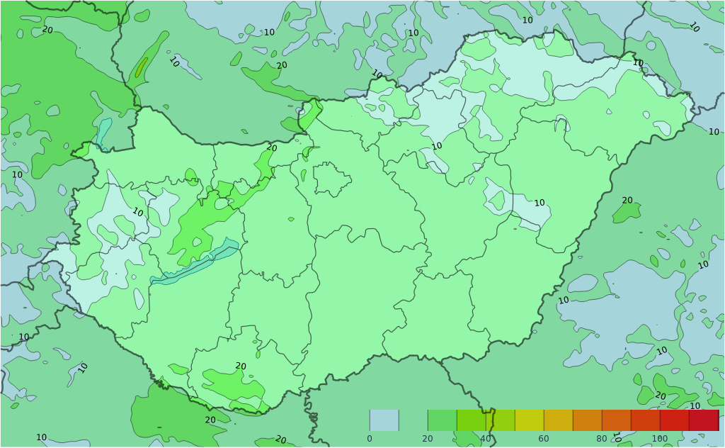 A térképek a csapadék intenzitását jelöli. A világoskék árnyalatok gyenge, a sötétebbek erősebb csapadékintenzitást jeleznek.