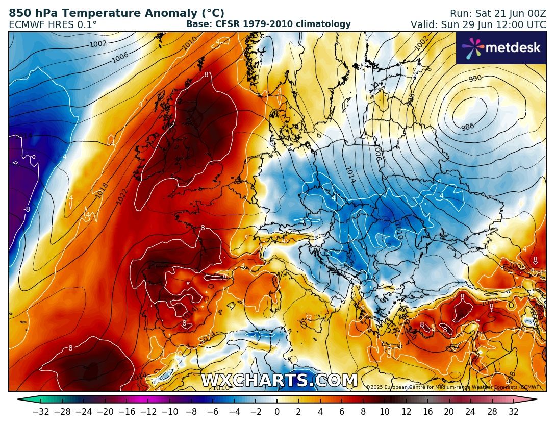 Nagyon szélsőséges Európa időjárása ezekben a napokban, hiszen Nyugat-Európában jelenleg hőhullám tombol, ugyanakkor Oroszország nyugati területein a hőmérséklet még a kora tavaszt idézi, nagy területen fűteni kell. A sokéves átlag szerint ráadásul ilyenkor Oroszországban kellene melegebb időnek lennie. Térségünkben ugyanakkor épp az átlagos körül alakul a hőmérséklet, de már nem sokáig büszkélkedhetünk ezzel a különleges pozícióval.