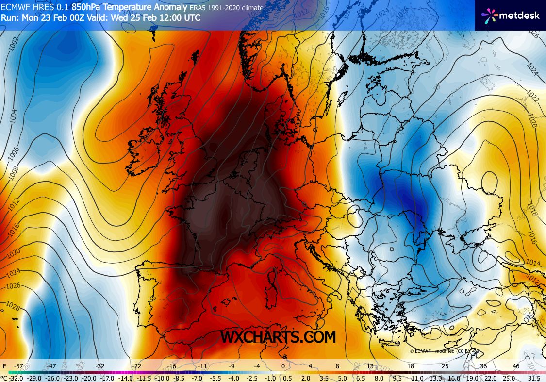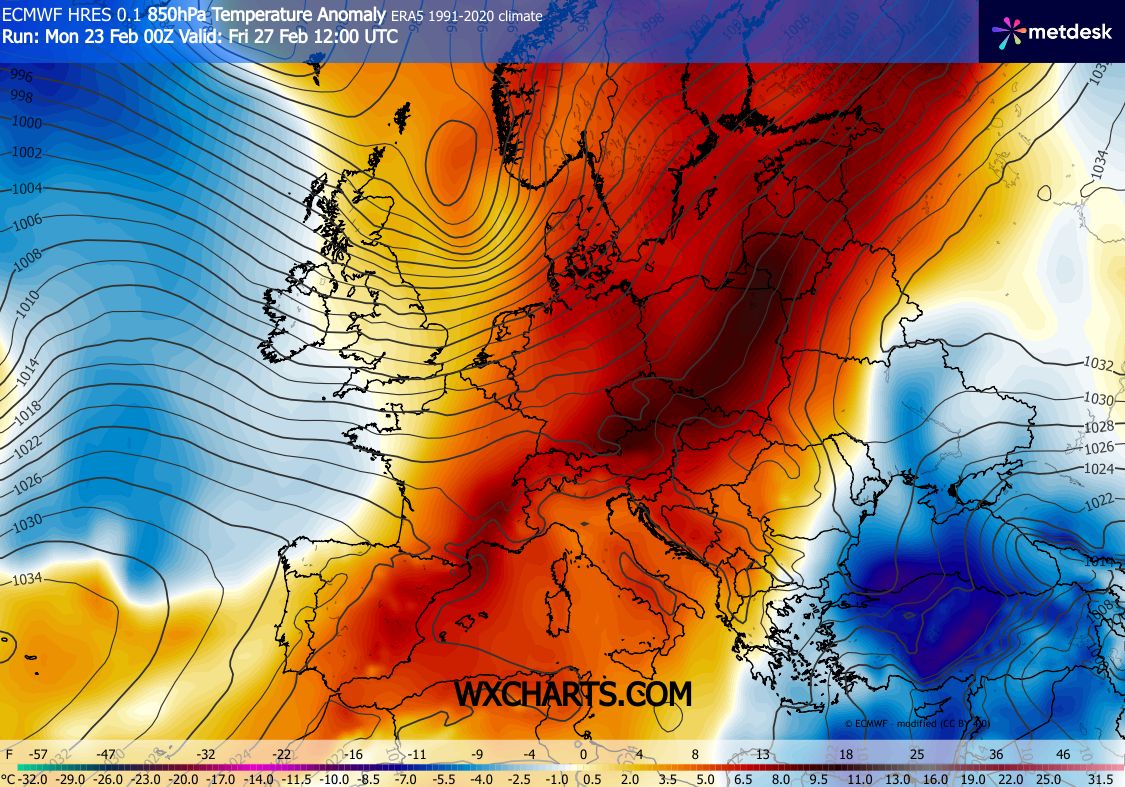 Február utolsó napjai és március eleje rendkívüli meteorológiai anomáliát tartogat Európa számára, amely alól Magyarország sem lesz kivétel. Az előrejelzési térképek mutatják, hogy egy hatalmas kiterjedésű, szubtrópusi eredetű légtömeg hódítja meg a kontinenst, messze az átlag fölé emelve a hőmérsékletet. Közép-Európa és a Kárpát-medence közvetlenül a melegedés középpontjába kerül, így a tél vége inkább áprilisi időjárást idéz majd.