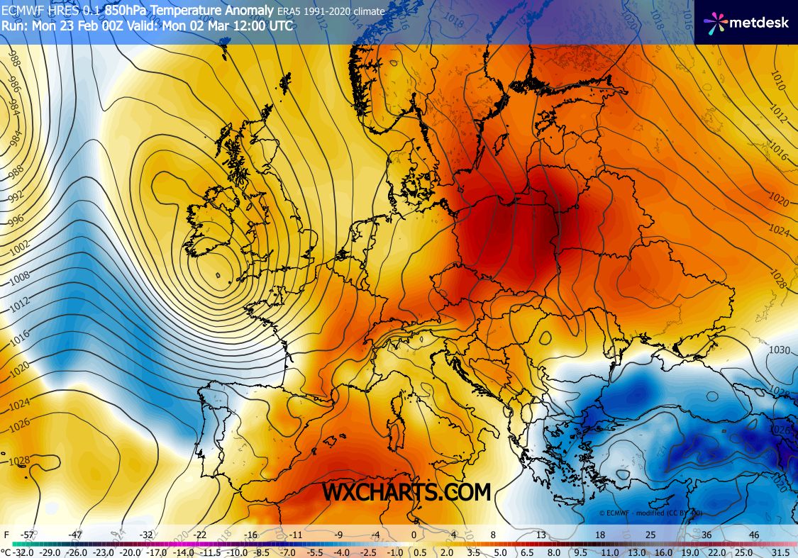 A következő egy hétben kontinensünk nagy része fölé rendkívül enyhe levegő áramlik. Hőmérséklet szempontjából már áprilisi meleget tapasztalhatunk majd.