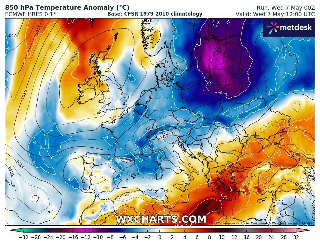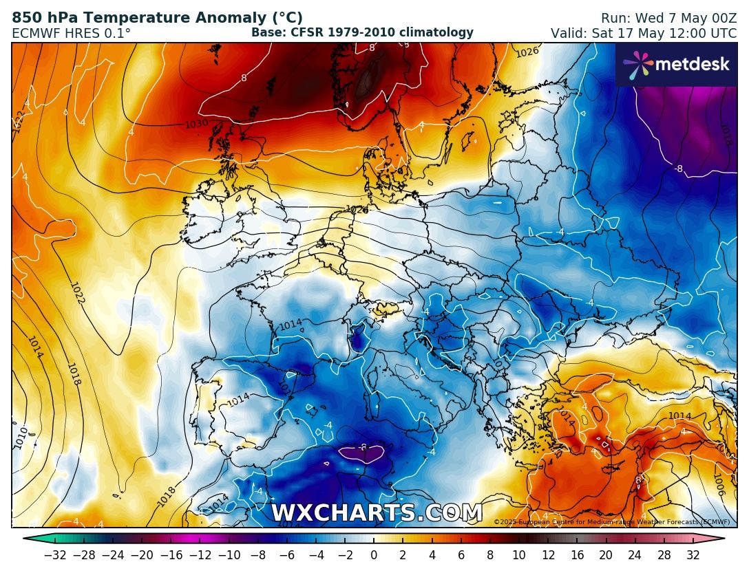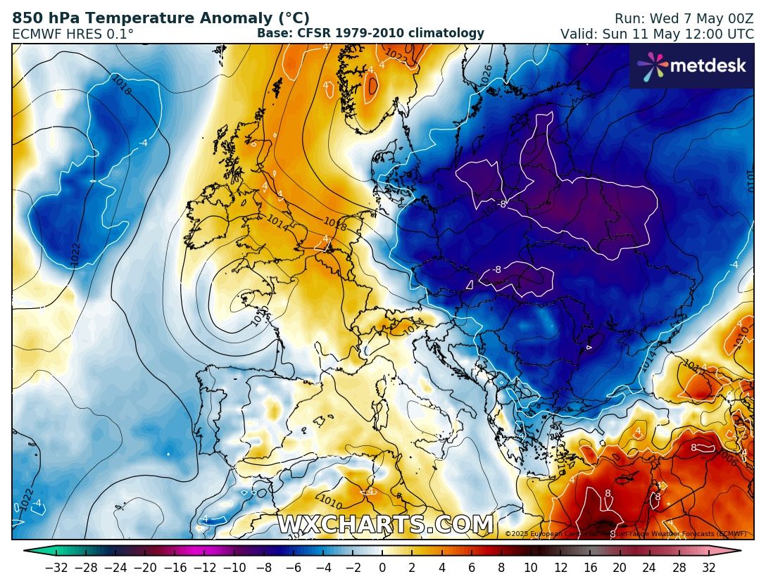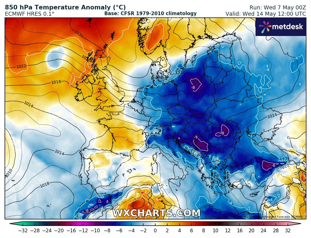 A május nyárias idővel köszöntött be Európa nagy részén. Azóta azonban nagyot fordult az időjárás kereke. A hőmérséklet nem csak a Kárpát-medencében, hanem szinte egész Európában az ilyenkor szokásos alatt alakul. A következő egy hétben jelentősebb melegedés csak Nyugat-, Északnyugat-Európában várható, térségünkben a hűvös idő tartósabbnak bizonyul.