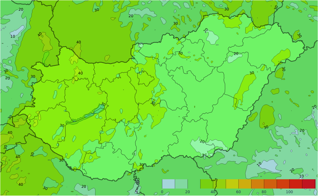 Ma napközben (főként délután) az északkeleti megyékben, illetve a Dunántúl északi és középső tájain alakulhat ki helyenként zivatar, amelyekhez átmeneti szélerősödés (általában 50-65 km/óra), jelentős csapadék (5-15 milliméter), esetleg jégeső (jégméret 1-2 centiméteres átmérő alatt) társulhat.