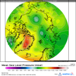 Az alábbi térképeken követhetjük végig a grönlandi anticiklon és a mellette létrejövő ciklon kifejlődését a következő másfél napban: