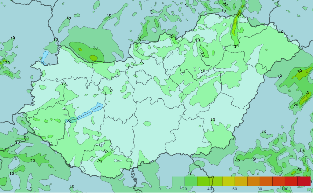 Csütörtökön hajnaltól, délelőttig a Dunántúli-középhegység tágabb környezetében egy-egy 65 km/óra feletti széllökés kialakulhat északnyugati irányból, majd késő estétől északnyugaton 65 km/óra körüli széllökés délnyugati irányból.