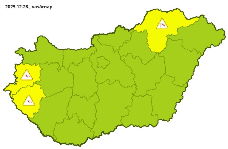 A HungaroMet figyelmeztetést adott ki vasárnapra a viharossá fokozó szél miatt Vas, Zala és Borsod-Abaúj-Zemplén vármegyére.