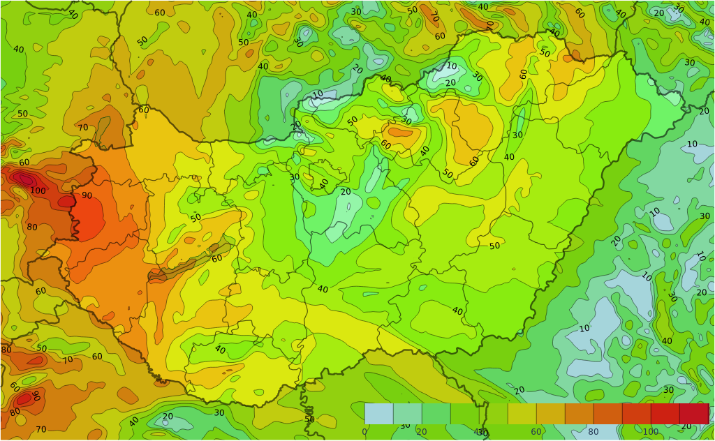 Hétfő éjjel a Dunántúlon, majd a Duna-Tisza közén a keleti, délkeleti szél fokozatosan erősödik, majd a széllökések több helyen is várhatóan elérik az 55-70 km/órát. 70 km/órát meghaladó szél leginkább a magasabban fekvő tájakon (Dunántúli-középhegység, Mecsek térségében, eleinte Alpokalján, Zalában), illetve a Balatonnál valószínű. Reggelre, kora délelőttre a Dunántúl nyugati felén már csillapodik a szél.