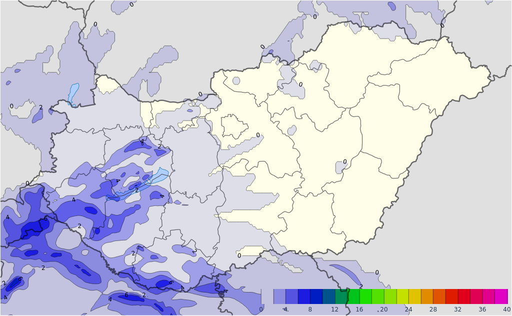A dél felől érkező csapadékban hétfő hajnaltól a Dunántúlon már kialakulhat néhol zivatar. Hétfőn a déli óráktól eleinte inkább a Dunántúlon, Duna vonalában, majd délután, este az ország keleti felén is labilizálódik a légkör és a szórványos záporok mellett helyenként zivatar is várható. Zivatarban átmeneti intenzív csapadék, 60 km/órát meghaladó széllökés valószínű.