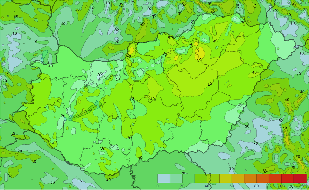Vasárnap már inkább csak Békésben érheti el, haladhatja meg kissé a napi középhőmérséklet a 25 fokot, emiatt ott elsőfokú figyelmeztetés érvényes.