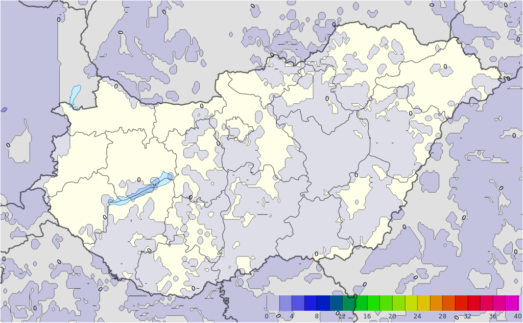 A péntek esti órákban érkezett hidegfront éppen hazánk felett húzódik. A déli megyékben az eső, zápor mellett még egy-egy zivatar is előfordulhat.