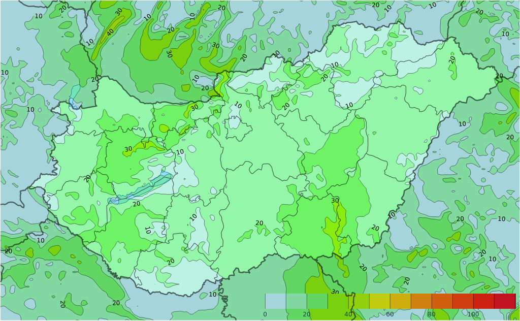 A zivatarokat lokálisan jelentős mennyiségű (> 15-20 mm) csapadék kísérheti.