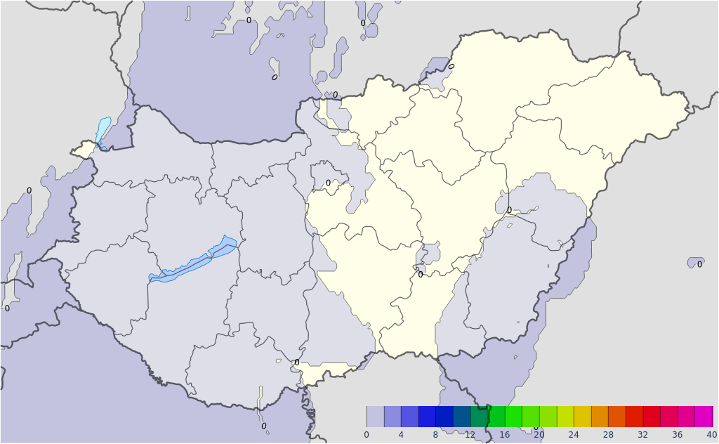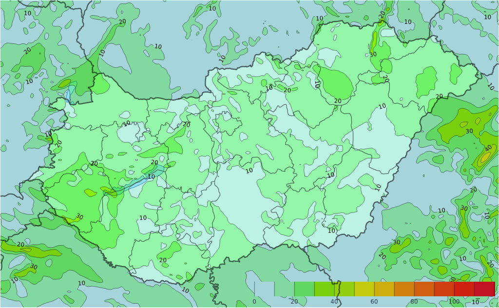 Hétfő hajnalban a nyugati, délnyugati tájakon kialakulhat, illetve besodródhat egy-egy zivatar, amelyeket felhőszakadás kísérhet (akár 20-25 milliméter). Napközben az északkeleti határnál kis eséllyel megdörrenhet az ég.