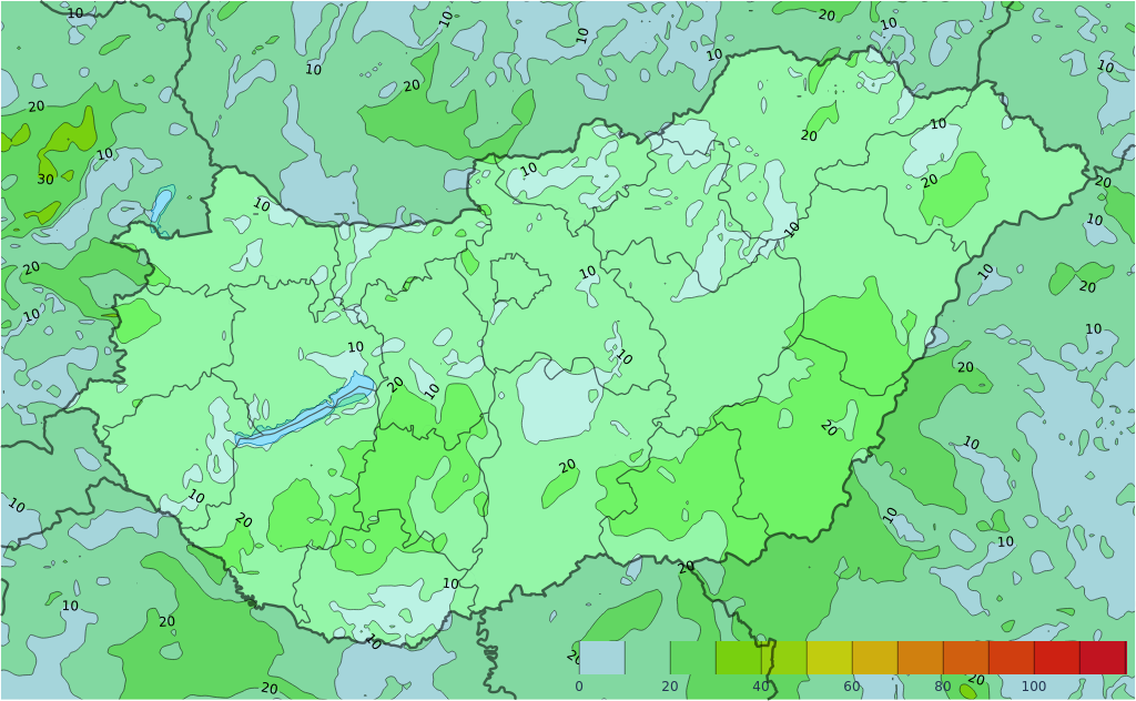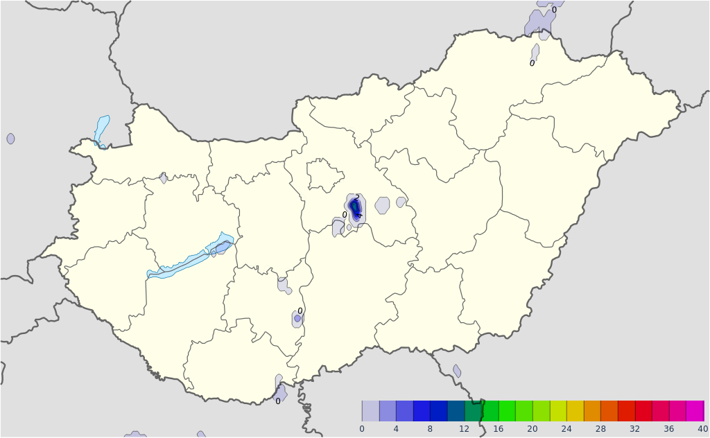 Pénteken főként a Dunántúl keleti felén, illetve az ország középső észak-déli sávjában fordulhatnak elő (a csütörtökinél kisebb számosságban) zivatarok. Környezetükben mindkét nap lokális intenzív csapadék (több, mint 15-20 milliméter),