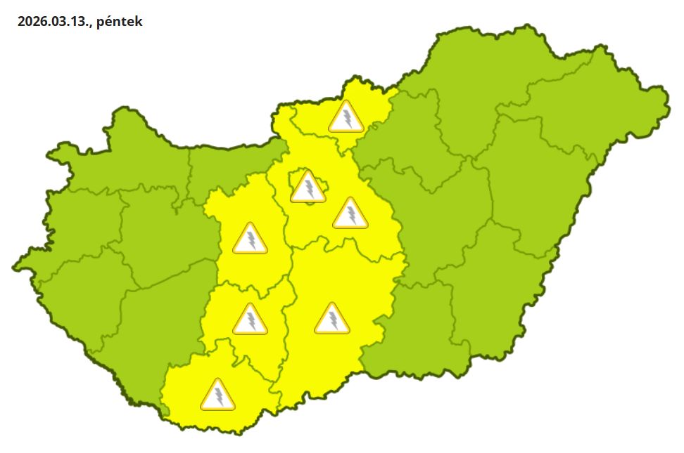 A Hungaromet Zrt. elsőfokú figyelmeztetést adott ki péntekre Pest, Baranya, Fejér, Nógrád, Tolna, Bács-Kiskun vármegyékre zivatar veszélye miatt.