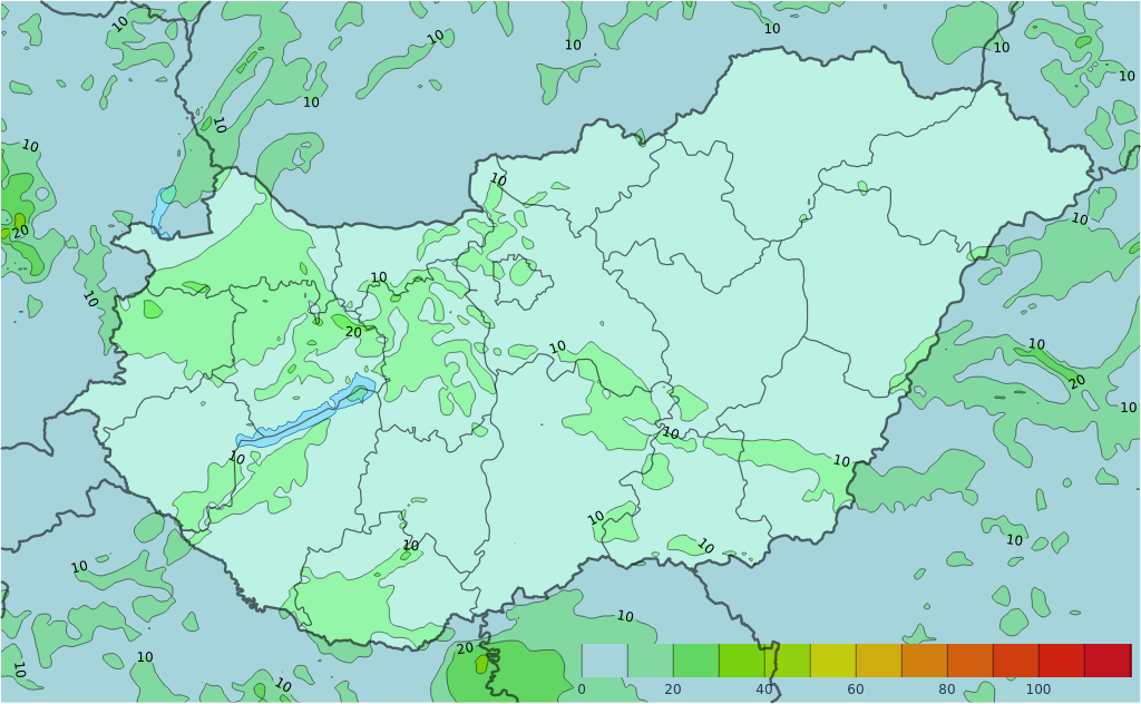 Túlnyomóan borult lesz az ég, foltokban párás, ködös idő várható, majd délelőtt északnyugat felől szakadozik, csökken a felhőzet, estig azonban az ország keleti felén borult idő marad. A csapadék súlypontja egyre inkább a Dunától keletre helyeződik át. Nagyrészt gyenge vagy mérsékelt marad a légmozgás.A hőmérséklet kora délután többnyire 7 és 12 fok között valószínű, de Borsodban ennél pár fokkal hidegebb is lehet. Késő este 2, 7 fok valószínű.