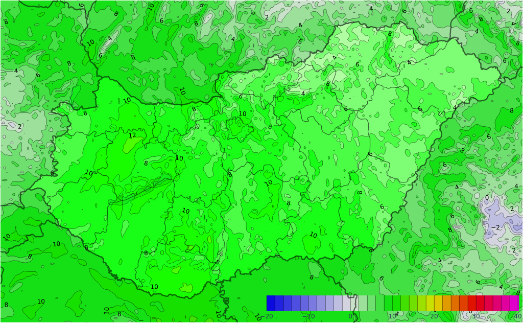 Az ország keleti, délkeleti felén változatlanul derült marad az égbolt, míg nyugatabbra a fátyol- és gomolyfelhők mellett általában sok napsütés valószínű. Az ország északnyugati felén helyenként zápor, esetleg zivatar előfordulhat, ugyanakkor délen és keleten nem várható csapadék. A jellemzően délies irányú szél gyenge vagy mérsékelt marad. Hajnalban többnyire 0, +8 fokra van kilátás, a nagyobb városokban, vízpartok közelében, magasabban fekvő helyeken számíthatunk a magasabb értékekre, míg északkeleten a fagyzugokban ennél néhány fokkal hidegebb is lehet. Délutánra 15, 20 fok közé melegszik fel a levegő.