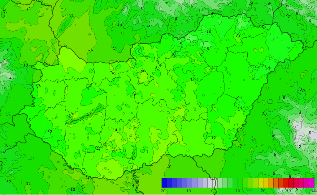 Általában napos idő várható, majd nyugat felől megnövekszik, a nap második felében meg is vastagszik a felhőtakaró. Keleten, délkeleten ugyanakkor délutánig derült maradhat az ég, míg nyugaton már reggel lehetnek felhősebb körzetek. A déli óráktól az ország északnyugati felén helyenként eső, zápor kialakulhat, zivatar sem teljesen kizárt. A délnyugati, déli szél északnyugatira, északira fordul, és hazánk északnyugati felén megélénkül, néhol meg is erősödhet. A legalacsonyabb éjszakai hőmérséklet általában -1, +6 fok között alakul, a felhős nyugati, északnyugati tájakon ennél magasabb, míg a Dunától keletre a fagyzugokban néhány fokkal alacsonyabb értékek is valószínűek. A csúcsérték többnyire 13, 18 fok között alakul, de a nyugati felhősebb tájakon ennél pár fokkal hűvösebb is lehet.